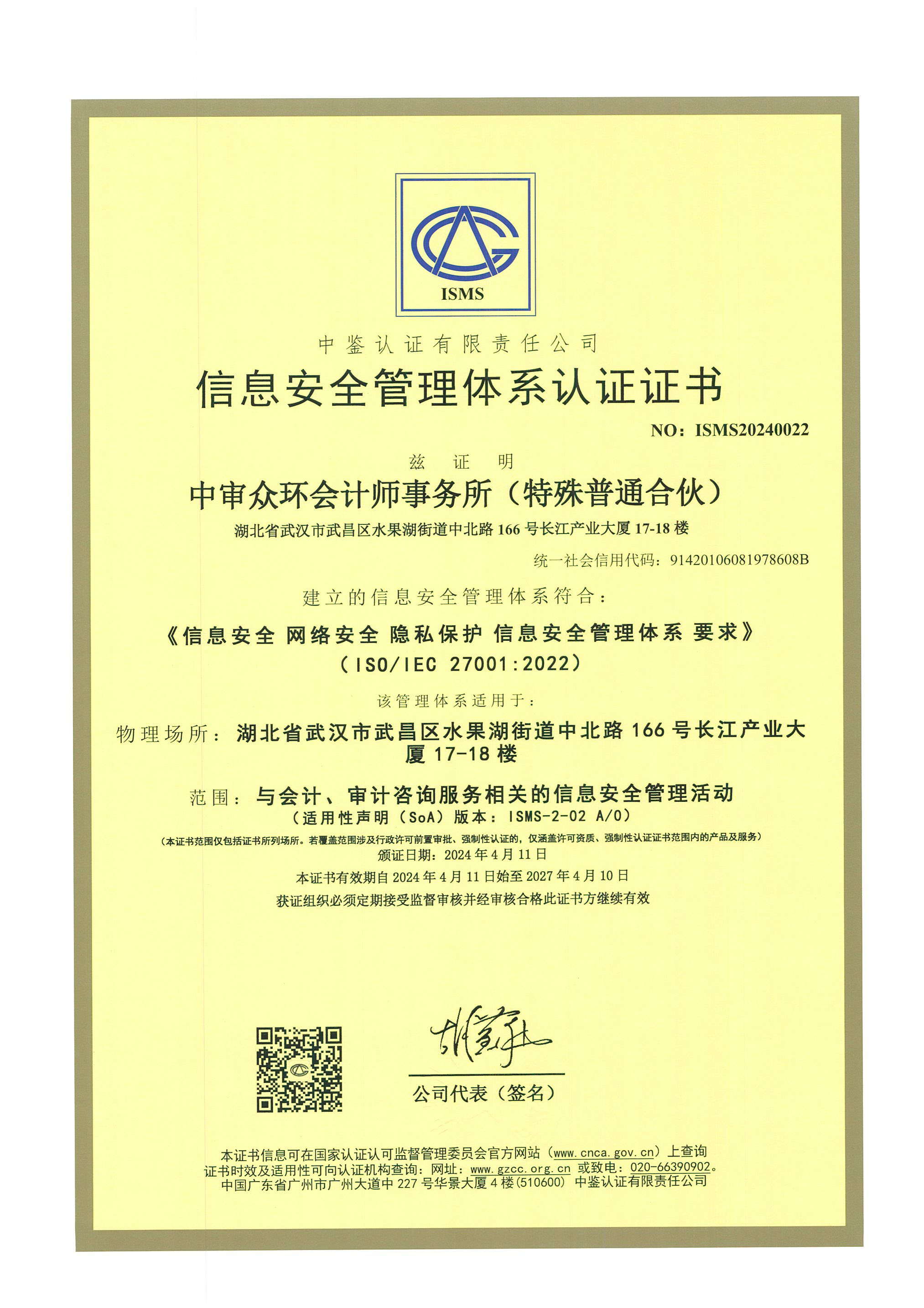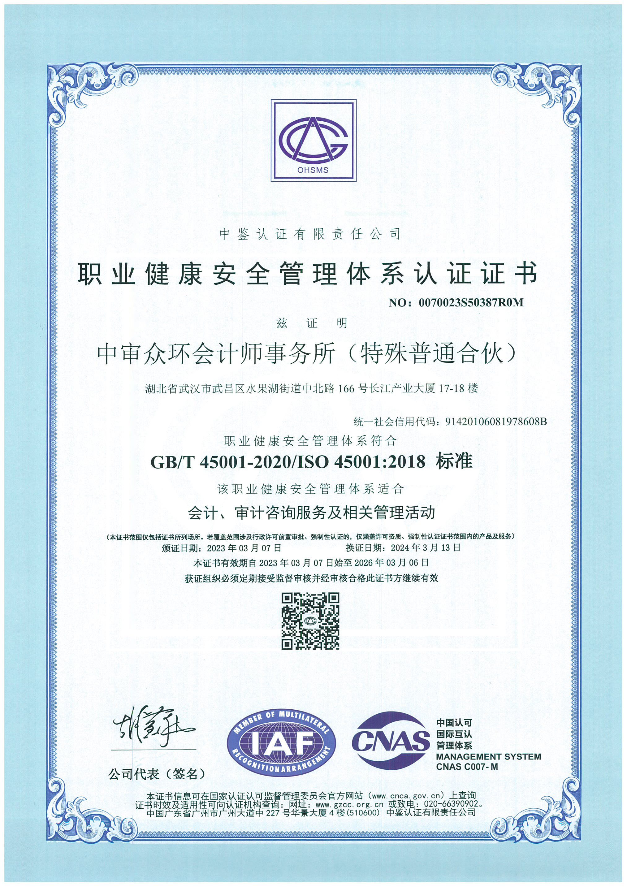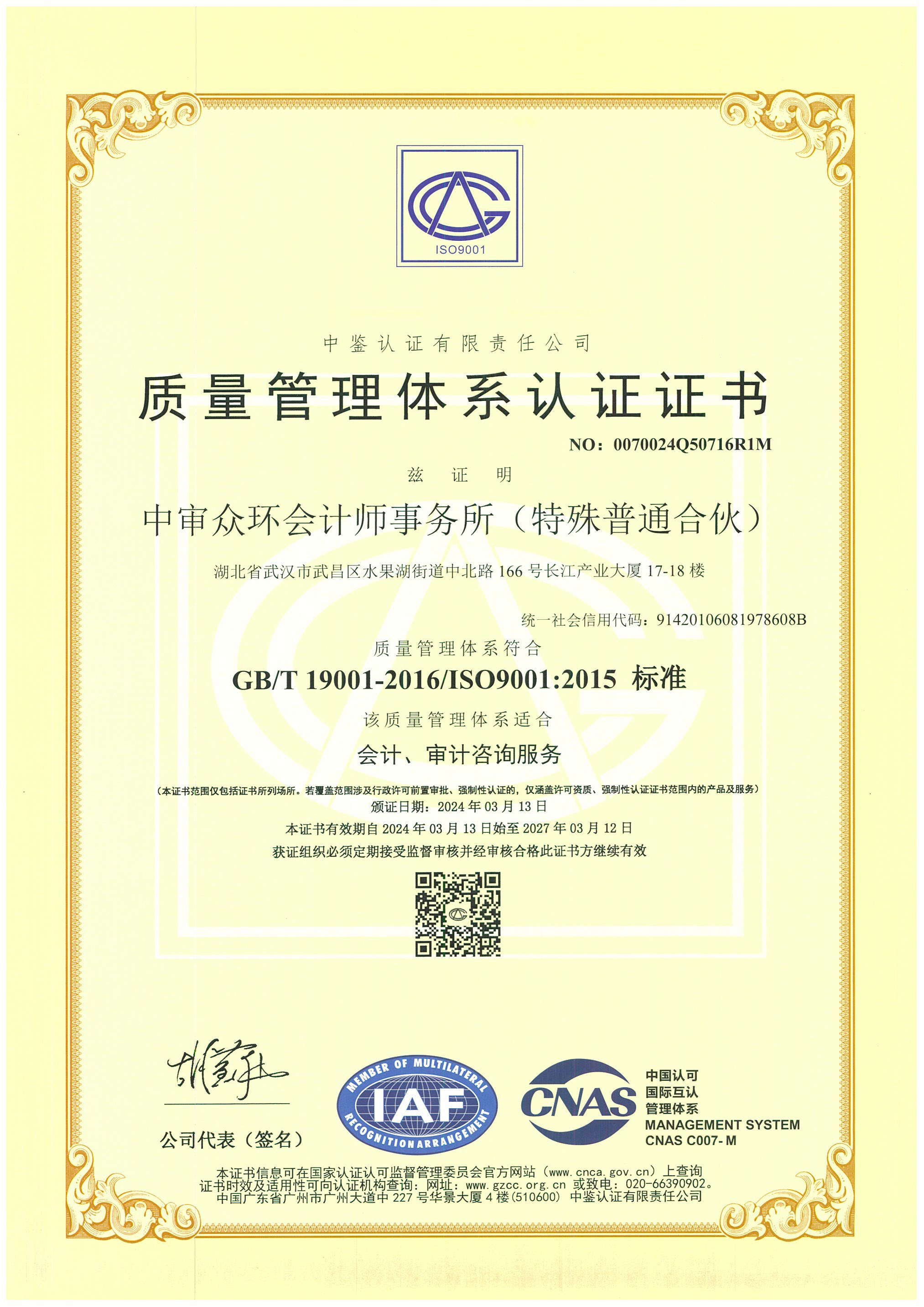 中审众环常年服务的一级央企20余家,大型国企250余家,上市公司240余家,新三板220余家,外资企业360余家。成立30多年来,中审众环以“寰宇智慧 诚信知行”的发展理念和卓越的专业服务质量、优异的专业服务水平,赢得了社会各界广泛赞誉,获得百余项省部级以上及个人荣誉。中审众环与全球领先的专业财税服务机构玛泽建立有紧密联系,依托玛泽集团完善的一体化全球网络,中审众环可为客户在全球范围内提供独特的高水平财税专业服务。