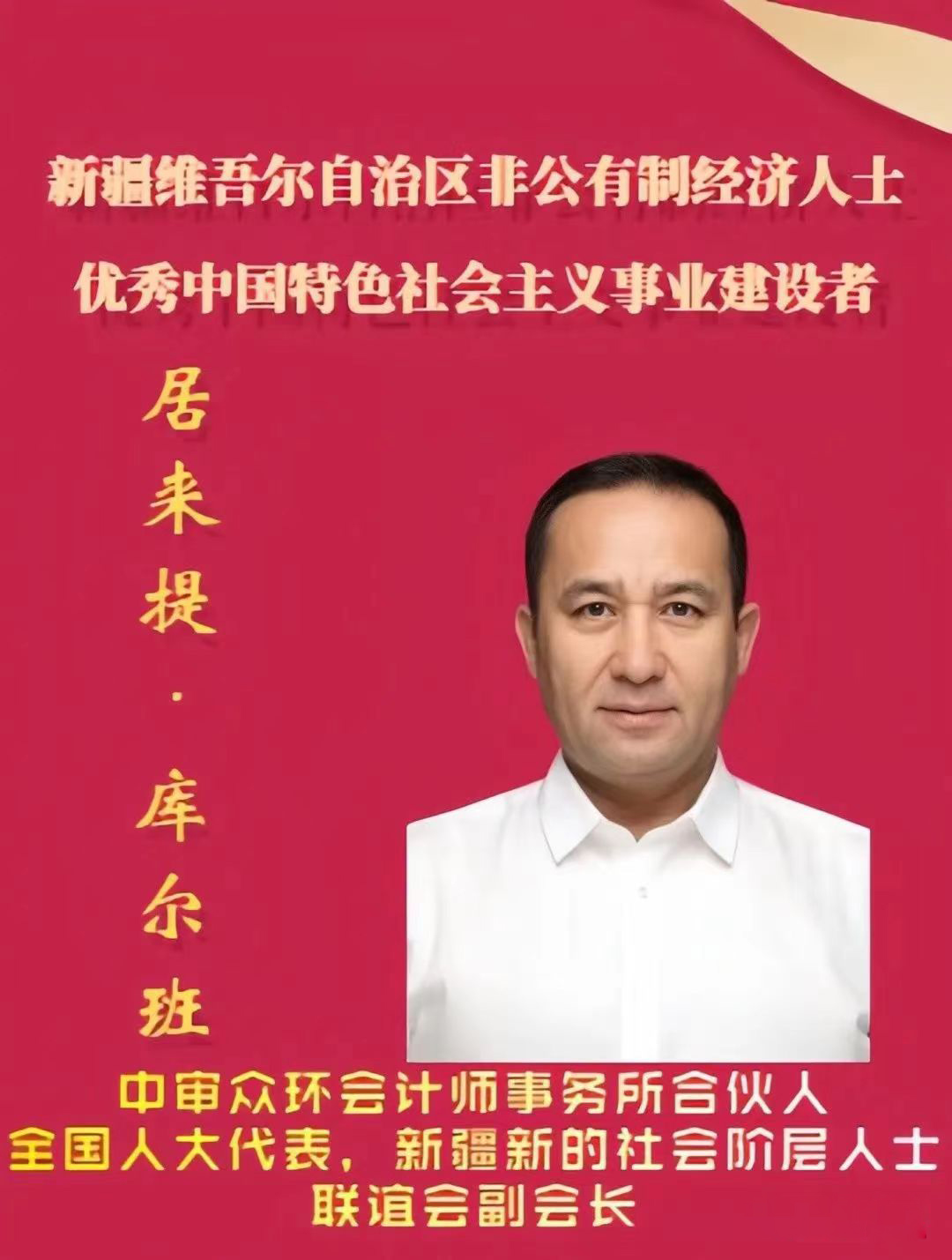 居来提·库尔班系第十四届全国人大代表,新疆新的社会阶层人士联谊会副会长。在其带领下,中审众环新疆分所提供的各类专业服务,获得自治区财政厅、自治区国资委、兵团国资委、自治区建设厅、国土资源厅、财政专员办等厅局(委办)的高度认可和褒奖,为新疆经济和社会事业高质量发展作出了积极贡献。